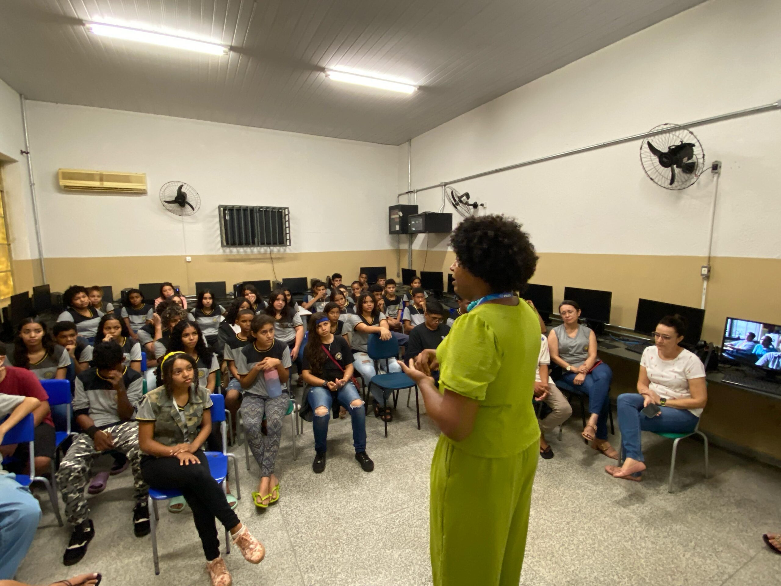 O Conselho Municipal de Promoção da Igualdade Racial, representado pela coordenadora do Patrimônio Cultural, Histórico e Natural do município, Julia Aguilera, atendeu ao convite da Escola Estadual Noraldino Lima e ministrou uma palestra especial em celebração ao Dia das Religiões de Matriz Africana. A atividade reuniu estudantes do 8º e 9º ano em uma roda de conversa enriquecedora sobre intolerância religiosa, diversidade cultural e a valorização da história na luta contra o preconceito.