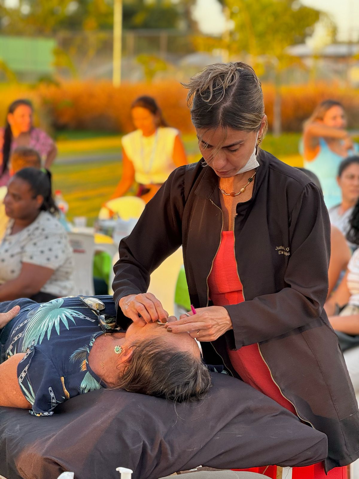 A programação contou ainda com a participação especial de profissionais renomadas, como Germana Gomes (moda consciente e circular), Juliana Oliveira (sobrancelhas), Maria Clara (unhas), Leidiane Silva (magia das tranças) e Bianca Santos (massagem e sobrancelhas), que compartilharam seu talento e proporcionaram momentos de autoestima e autocuidado às participantes.