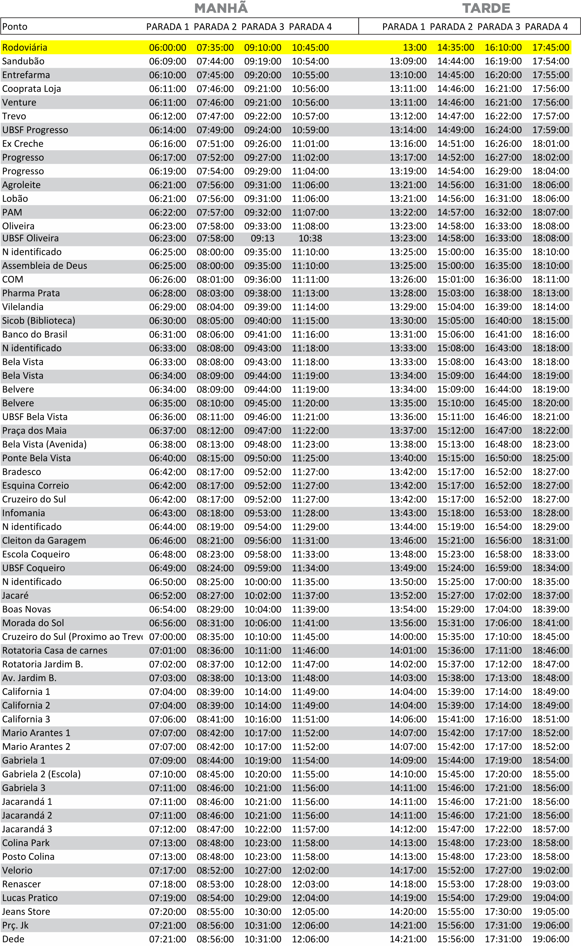 HORÁRIO DE OPERAÇÃO A prefeitura Municipal do Prata informa que o transporte público municipal funciona segunda a sexta-feira das 6h até as 19h e aos Sábados das 06h até 12h . Consulte os horários abaixo . (Download Itinerário)