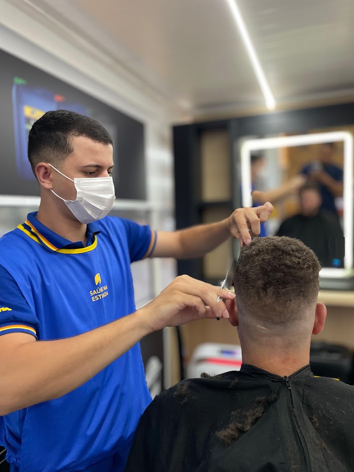 A unidade móvel está equipada com diversos serviços de saúde e bem-estar, como: